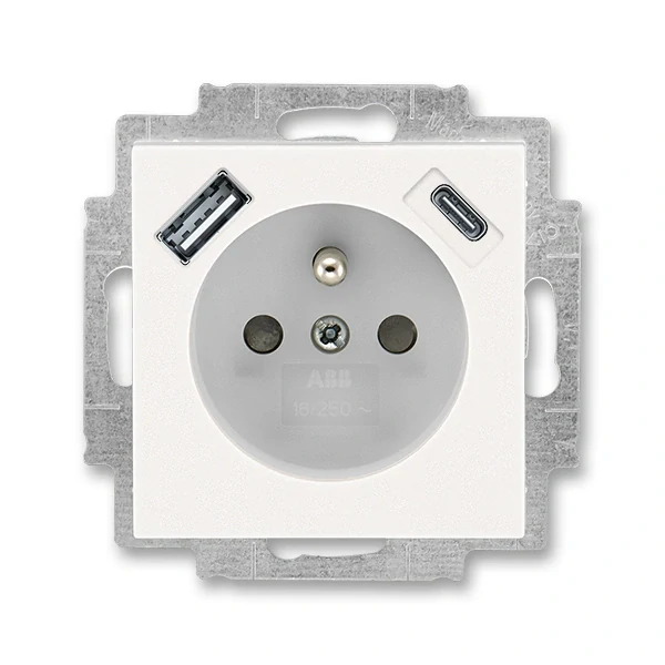 Zásuvka s USB nabíjením (USB-A + USB-C), bezšroubová, 5569H-A32357 68, ABB, Levit®M, perleťová / ledová bílá